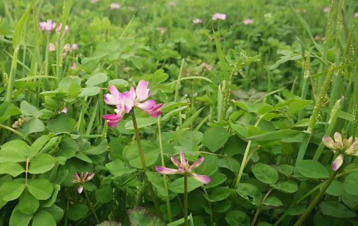 紫云英又名红花草,是豆科二年生草本植物。幼嫩时可以用作蔬菜,味鲜清甜;成熟时是优质绿肥,含氮素丰富;还能作为蜜源植物。紫云英喜欢温暖湿润的气候,生长温度为15℃至25℃,冬季低于-5℃会发生冻害甚至死亡,夏季高于35℃生长困难。紫云英对土壤要求不严,适宜在pH值5.5至7.5的砂壤土或粘壤土中生长,不耐涝。耐阴性强的紫云英可以在晚稻收割前套种,其他品种适合在收割后播种。稻田种植紫云英大多在9月中旬到10月初为宜,每亩播种量1.5至2公斤。紫云英鲜草产量高低取决于栽培水平,种得不好亩产500公斤,管理得当可达2000公斤以上。种植良好的田块,亩产鲜草可达3000斤。