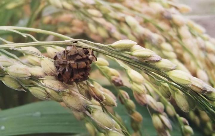 水稻在抽穗期发生稻瘟病影响水稻产量。发生穗颈瘟对产量影响最大。水稻发生穗茎瘟影响产量最大。