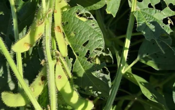 大豆常见病害有:耙点病、枯萎病、荚枯病、茎枯病、黑点病、白粉病、疫病、细菌斑点病、羞萎病、锈病、灰星病、菌核病、轮纹病、炭枯病、纹枯病、黑痘病等。大豆常见虫害有:双斑荧叶甲、斑须蝽、点峰缘蝽、肾毒蛾、斑缘豆粉等。大豆病虫害有霜霉病、猝倒病、立枯病、紫斑病、叶斑病、灰霉病、细菌性斑点病、蚜虫、象甲虫、盲蝽等。