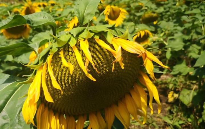 向日葵常见虫害有草地螟,可喷洒溴氰菊酯乳油;潜叶蝇,可用敌百虫粉或杀螟松粉喷撒;黑绒金龟虫甲,可用杀螟松或百治屠粉剂喷撒;蒙古灰象虫甲,将甲基1605粉剂与湿土混合,洒在植株周围;网目沙潜,用甲胺磷乳油500倍溶液喷雾。向日葵主要病虫害有锈病、菌核病、蛴螬、地老虎、金龟子、绵铃虫等。影响向日葵生长的主要病害有病毒性、细菌性、真菌性3种。