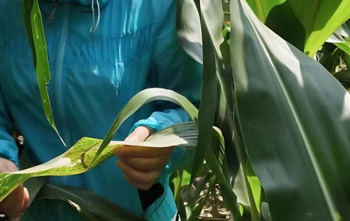 今年气候条件适宜,当地玉米褐斑病发生普遍。防治可以喷洒己唑醇等药剂。在玉米4~5片叶期,每亩用25%戊唑醇可湿性粉剂30~50克,兑水30公斤;也可在发病初期,每亩用30%唑醚·戊唑醇悬浮剂20~30毫升+99%磷酸二氢钾80~100克,或40%苯甲·肟菌酯悬浮剂10~15毫升+99%磷酸二氢钾80~100克。此外,玉米3~5叶期可用15%的粉锈宁可湿性粉剂1000倍液喷雾,间隔7~10天连续喷雾2次。